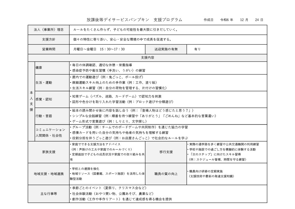 放課後等デイサービス パンプキン